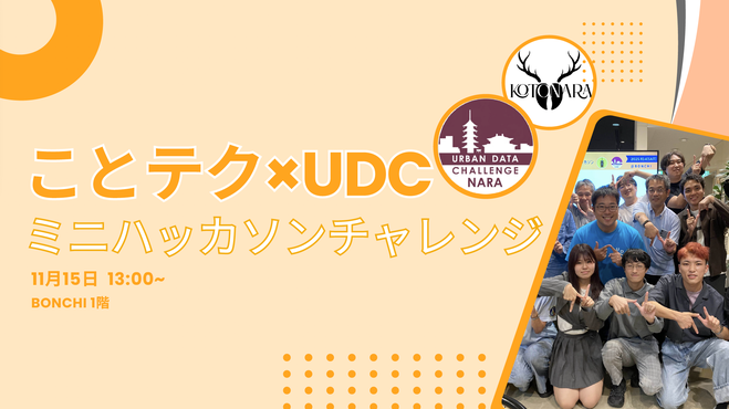 ことならテックプロジェクトとアーバンデータチャレンジ奈良がコラボし、オープンデータデー(アーバンデータチャレンジ奈良ブロック)と連携したアイデアソンを開催します。奈良県や大和郡山市など自治体が公開するデータを活用し、地域課題の解決アイデアを短時間で形にします。アーバンデータチャレンジは、地方自治体が保有するデータを使って地域課題を解決するコンテストであり、データ活用に効果的なツールやアイデアを広く募集する取り組みです。本イベントはその理念に共感し、地元データを身近な課題に結びつける実践の場として企画しました。