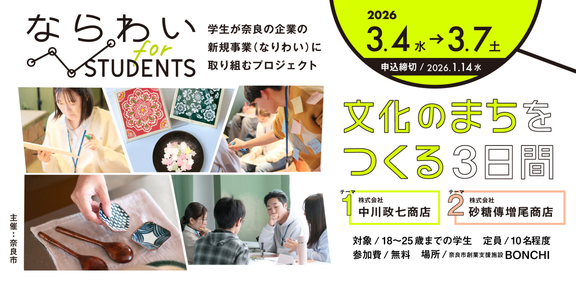 【学生さんはこちらもチェック!】3月4日(水)~3月7日(土)開催「ならわい for students ~文化のまちをつくる3日間~」