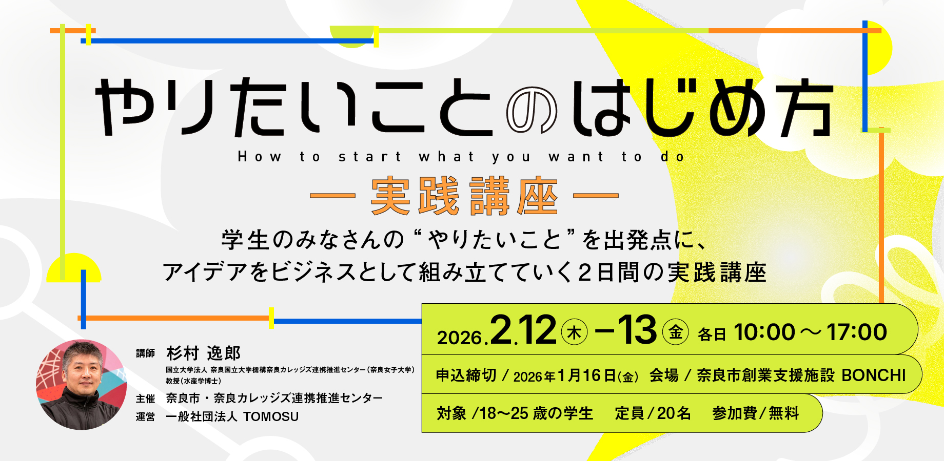 【募集は終了しました】2月12日(木)〜2月13日(金)やりたいことのはじめ方 実践講座